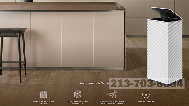 Coway’s four-stage differentiated filter system reduces ultra-fine dust and odors to keep indoor air clean. It also provides a powerful dual-power system for inhaling contaminated air and a front-facing accumulator for fresh air to provide faster, finer air handling.